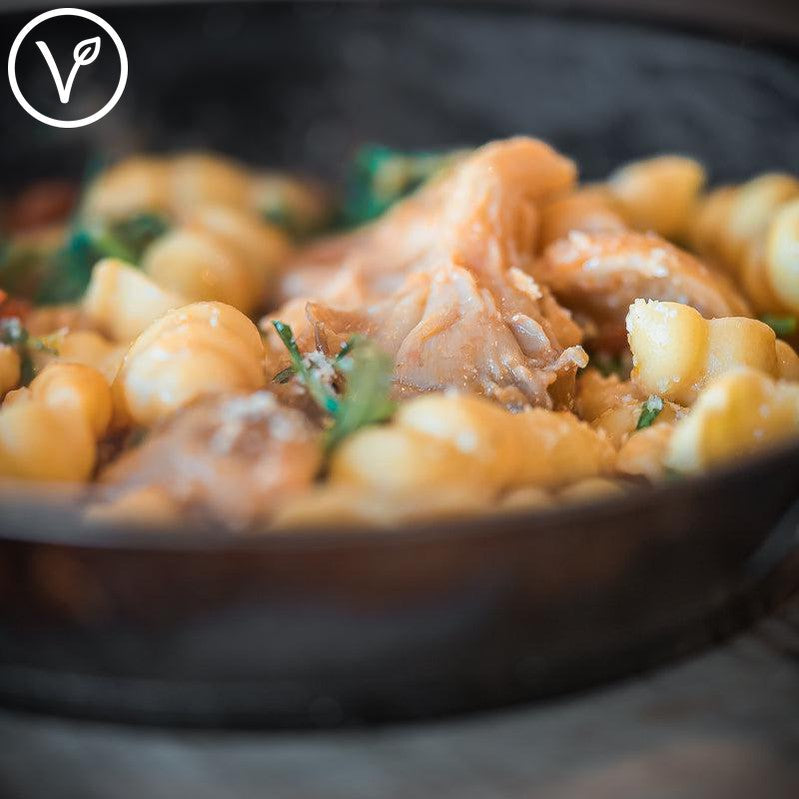 Deze huisbereide pasta is een heerlijke combinatie van sappige tomaten en de rijke, aardse smaken van verse mix van champignons. Verrijkt met een subtiele toets van knoflook en een scheutje olijfolie, vormt deze pasta de perfecte harmonie tussen hartig en fris.