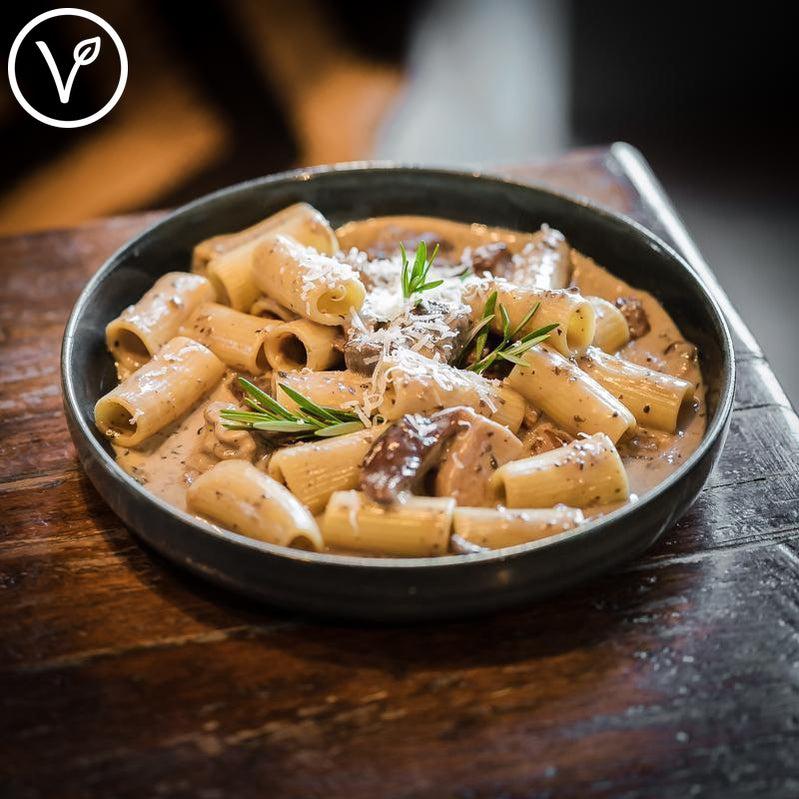 Romige rigatone met paddenstoelen, porcini en truffel, een smaakbom vol Italiaanse luxe. De saus is zacht en rijk tegelijk, op smaak gebracht met wilde paddenstoelen, een vleugje truffel en extra afgewerkt met gebakken funghi voor die heerlijke, volle bite.